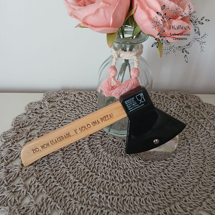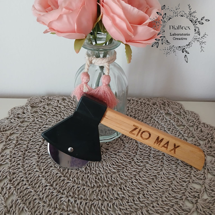 Ascia con rotella Taglia Pizza con manico in bambù inciso a laser.