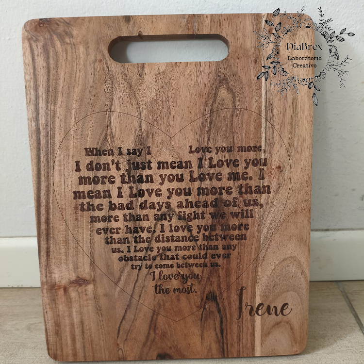 Tagliere rustico in Legno di Acacia personalizzato con incisione a laser.