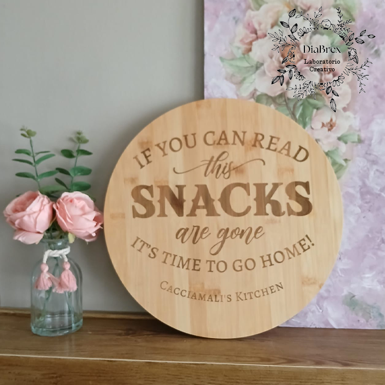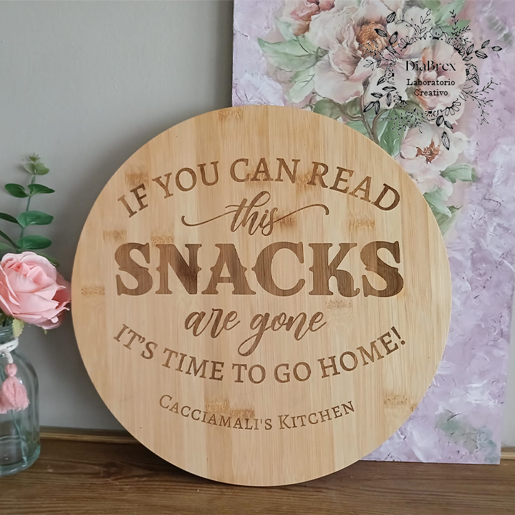 Grande vassoio con base girevole in bambù inciso a Laser come da immagine da personalizzare con nome o piccola dedica.
